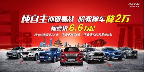 而“純自主迎貿(mào)易戰(zhàn) 哈弗神車降2萬”大型促銷活動,讓哈弗全系車型再次刷新其一直保持的性價比優(yōu)勢,在保持品質(zhì)與銷量持續(xù)領(lǐng)先的同時,在價格上再次加碼,成為市場上各個級別SUV的最具性價比車型?,F(xiàn)在買SUV,除了哈弗再無第二選擇。