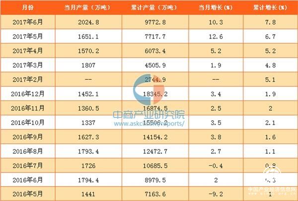 據(jù)中商產(chǎn)業(yè)研究院大數(shù)據(jù)庫最新數(shù)據(jù)顯示:2017年6月中國飲料產(chǎn)量為2024.8萬噸,同比增長10.3%。2017年1-6月中國飲料產(chǎn)量為9772.8萬噸,同比增長7.8%。