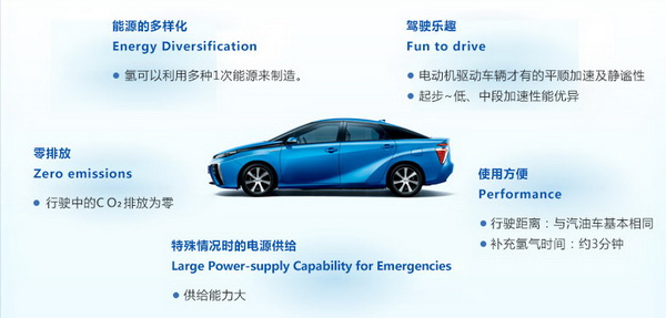 而最引人矚目當(dāng)屬2014年底豐田首款推出的全球首款量產(chǎn)氫燃料電池車“MIRAI未來”,以氫氣為燃料,行駛過程中的排放物只有水,而且加氫時(shí)間僅需3分鐘,續(xù)航里程已達(dá)到500公里以上。