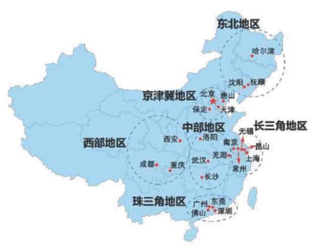 從布局來看,目前我國已形成多個(gè)機(jī)器人產(chǎn)業(yè)集群。根據(jù)我國行政和地理區(qū)劃方式,結(jié)合機(jī)器人產(chǎn)業(yè)實(shí)地發(fā)展基礎(chǔ)及特色,將全國劃分為京津冀、長三角、珠三角、東北、中部和西部共六大區(qū)域。其中京津冀機(jī)器人產(chǎn)業(yè)主要發(fā)展集聚區(qū)有北京、唐山、保定以及天津;長三角機(jī)器人產(chǎn)業(yè)集聚區(qū)為南京、無錫、上海、昆山以及常州等;珠三角地區(qū)則以廣州、深圳、佛山以及東莞為主要集聚區(qū);東北地區(qū)機(jī)器人產(chǎn)業(yè)以哈爾濱、沈陽、撫順為主;中部地區(qū)有長沙、武漢、洛陽等;西部地區(qū)有成都、重慶以及西安三大機(jī)器人產(chǎn)業(yè)集聚區(qū)。我國機(jī)器人產(chǎn)業(yè)主要集聚區(qū)分布情況如下: