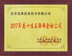 花果金融近期受邀參加第六屆中國金融科技峰會,在通過對企業(yè)多方面嚴格考核與專家評估后,花果金融被評為"2017年度十佳互聯網金融公司"。