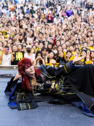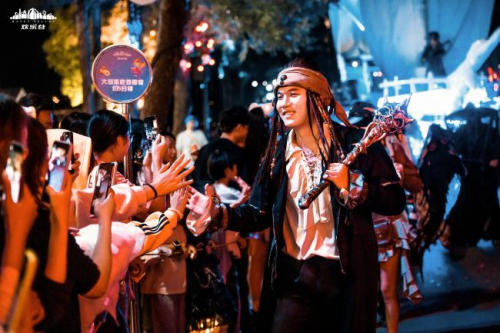 (圖為汪東城參與驚奇大巡游,引發(fā)游客爭(zhēng)相拍照打卡)