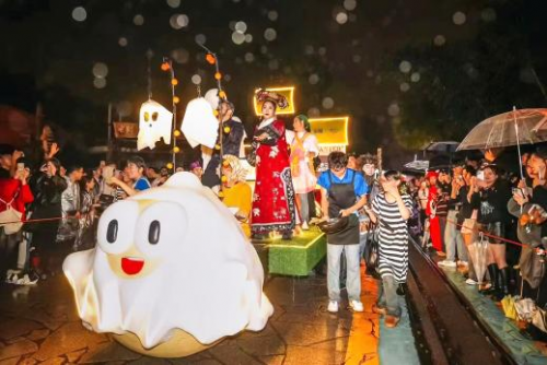 (圖為夜場(chǎng)主題大巡游,NPC們與游客進(jìn)行互動(dòng))