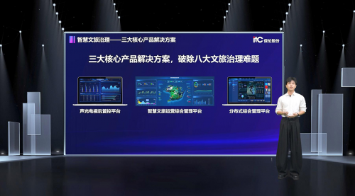其后,itc產(chǎn)品經(jīng)理張迪帶來了涵蓋文旅治理、文旅服務(wù)、文旅體驗(yàn)與文旅營銷四大核心板塊的itc智慧文旅解決方案。文旅治理方面,應(yīng)用itc聲光電視訊智控平臺(tái)、智慧文旅運(yùn)營綜合管理平臺(tái)、分布式綜合管理平臺(tái)等三大核心產(chǎn)品解決方案,破解文旅監(jiān)管難題,構(gòu)建全域協(xié)同新體系;文旅服務(wù)方面,通過itc文旅廣播、智慧語音導(dǎo)覽、可視對(duì)講、戶外LED顯示屏、信息發(fā)布、場室管理等系統(tǒng)應(yīng)用,直接游客服務(wù)痛點(diǎn),打造全場景服務(wù)新生態(tài);文旅體驗(yàn)方面,通過itc舞臺(tái)燈光、舞臺(tái)機(jī)械、景觀亮化、inside沉浸聲、LED顯示屏、聲光影綜合平臺(tái)等,讓每場演出成為“記憶錨點(diǎn)”,講好文旅故事,點(diǎn)亮夜間消費(fèi)經(jīng)濟(jì);文旅營銷方面,通過itc文旅慢直播、虛擬錄播等系統(tǒng),實(shí)現(xiàn)景區(qū)景點(diǎn)實(shí)時(shí)展播,有效打破地域限制,真實(shí)還原景、物細(xì)節(jié),創(chuàng)新文旅傳播引流模式,激活全域消費(fèi)鏈路,為文旅產(chǎn)業(yè)的營銷推廣開辟嶄新路徑,激活文旅消費(fèi)增長新引擎。