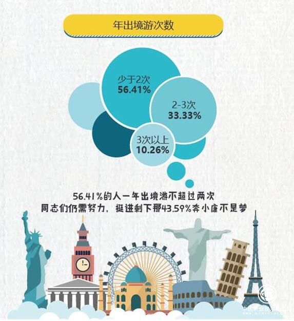 20-40歲中青年更青睞錯(cuò)峰出行,同樣,受制于假期影響和部分人群的經(jīng)濟(jì)原因,56.41%的人每年出境游少于2次。玩的次數(shù)少但是玩的好,已經(jīng)成了大部分出境自由行愛好者的新方向。