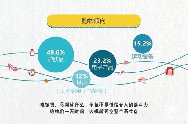 相反的是,調(diào)查顯示,境外自由行消費(fèi)主要仍然集中在美國(guó)、日本、香港等地區(qū),近一半的人境外購(gòu)物更傾向于護(hù)膚品,23.2%的人會(huì)在旅行中購(gòu)買電子產(chǎn)品。所以,千萬(wàn)不要小看女人的購(gòu)買力哦~她們可能會(huì)買空整個(gè)藥妝店。