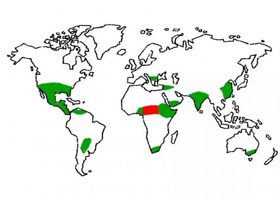 高粱的發(fā)源地,如圖上紅色所標(biāo)