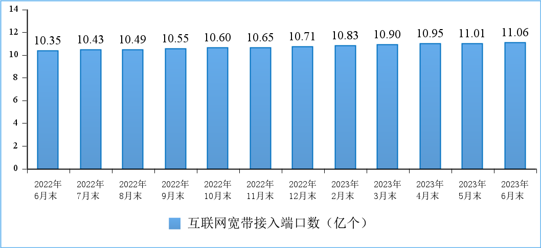 10G PON端口數(shù)超2千萬。截至6月末,全國互聯(lián)網(wǎng)寬帶接入端口數(shù)量達(dá)11.1億個(gè),比上年末凈增3457萬個(gè)。其中,光纖接入(FTTH/O)端口10.6億個(gè),比上年末凈增3855萬個(gè),占互聯(lián)網(wǎng)寬帶接入端口的96.2%。截至6月末,具備千兆網(wǎng)絡(luò)服務(wù)能力的10G PON端口數(shù)達(dá)2029萬個(gè),比上年末凈增506.5萬個(gè)。