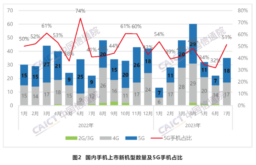 上市新機(jī)型累計(jì)238款,同比增長(zhǎng)6.7%,其中5G手機(jī)103款,同比下降14.9%,占同期手機(jī)上市新機(jī)型數(shù)量的43.3%。