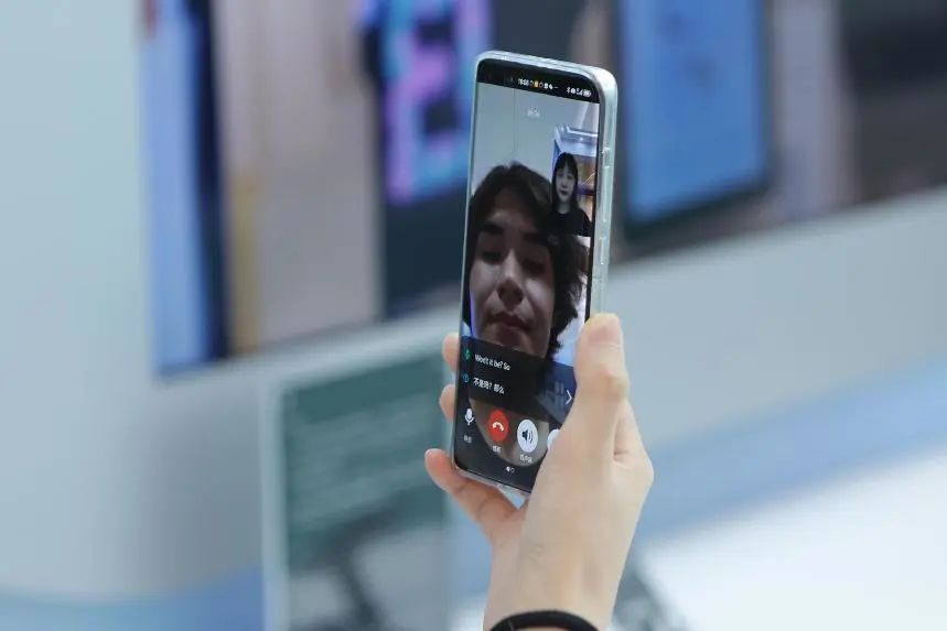 移動(dòng)5G新通話,一邊打電話可以一邊翻譯,是本屆亞運(yùn)會(huì)最熱門(mén)的溝通“神器”。5G新通話,讓傳統(tǒng)通話從“聽(tīng)得見(jiàn)”升級(jí)到“看得見(jiàn)”,更實(shí)現(xiàn)多語(yǔ)種在線實(shí)時(shí)翻譯,讓跨語(yǔ)言交流更簡(jiǎn)單。記者撥通5G新通話后,對(duì)面小姐姐講英語(yǔ),語(yǔ)音可以翻譯成中文在屏幕顯示,溝通確實(shí)方便了很多?!巴ㄟ^(guò)5G新通話,在面對(duì)面視頻通話中,可以同步傳送音樂(lè)、視頻、圖片,還能實(shí)現(xiàn)‘屏幕共享’‘多方通話’,有時(shí)候會(huì)比面對(duì)面溝通還方便?!斌w驗(yàn)的亞運(yùn)村媒體記者們說(shuō)。