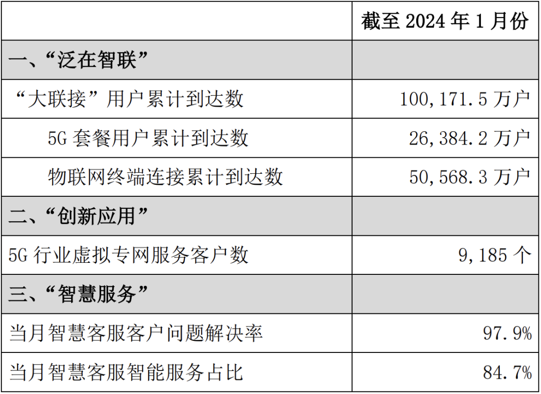 中國聯(lián)通昨日公布了截至2024年1月底的運營數(shù)據(jù)。