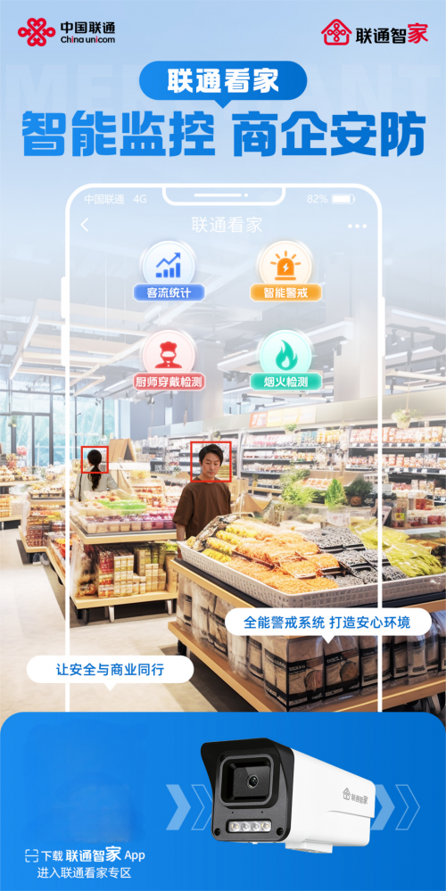 面向店鋪監(jiān)控、社區(qū)安防、鄉(xiāng)村治理等場景,聯(lián)通看家的AI功能,亦能派上大用場,為人們的工作和生活創(chuàng)造了便利。