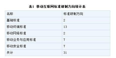 以移動(dòng)互聯(lián)網(wǎng)綜合標(biāo)準(zhǔn)化體系框架為基礎(chǔ),通過(guò)研究分析移動(dòng)互聯(lián)網(wǎng)范疇內(nèi)的已有標(biāo)準(zhǔn),提出能夠直接反映移動(dòng)互聯(lián)網(wǎng)特征,并能有效解決應(yīng)用與業(yè)務(wù)平臺(tái)、終端統(tǒng)一管理、服務(wù)質(zhì)量保證、個(gè)人信息保護(hù)與安全監(jiān)管等問(wèn)題的31個(gè)標(biāo)準(zhǔn)研制方向(如表1所示,具體見附件),以指導(dǎo)具體標(biāo)準(zhǔn)的立項(xiàng)和制定。其中網(wǎng)絡(luò)部分遵循現(xiàn)有網(wǎng)絡(luò)標(biāo)準(zhǔn)制定方向。