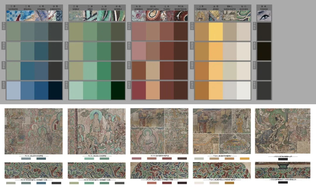 壁畫中佛陀的“頭光”用綠白疊暈?zāi)M發(fā)光效果,人物膚色以嫩紅復(fù)勾,細(xì)節(jié)堪比北宋版的“高級(jí)濾鏡”。色卡將這些技法轉(zhuǎn)化為可復(fù)刻的色階,臨摹古畫從此有據(jù)可依。