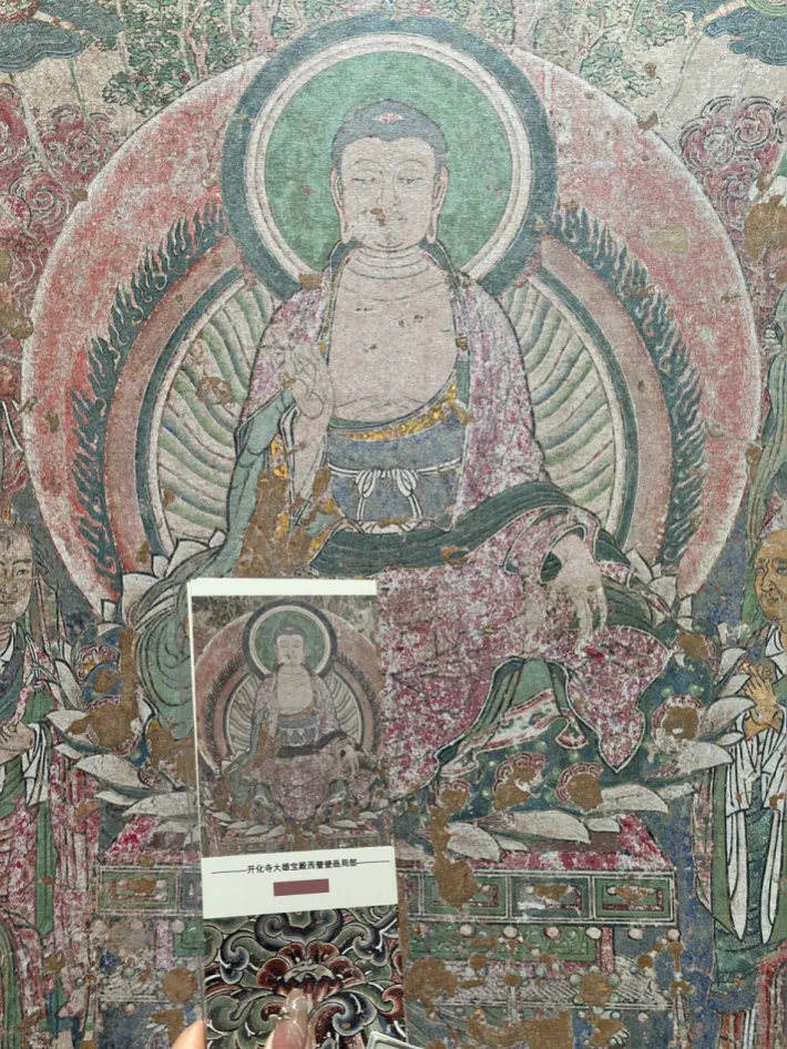 《營造法式》的活態(tài)印證:開化寺壁畫與北宋官式建筑彩畫高度契合,其“疊暈”技法(通過明度漸變塑造立體感)和“五彩遍裝”紋樣,堪稱《營造法式》的立體教科書。