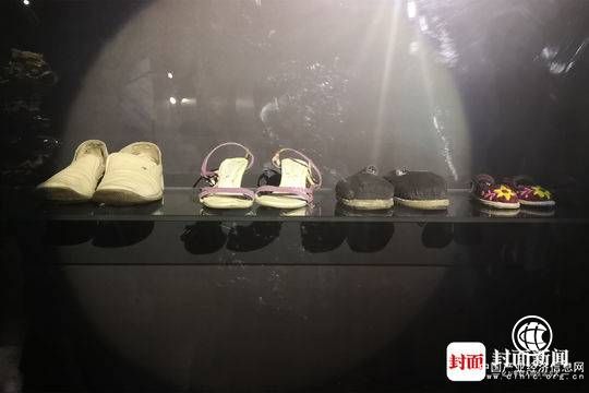 管內(nèi)陳列的4雙鞋,代表遇難的一家四口