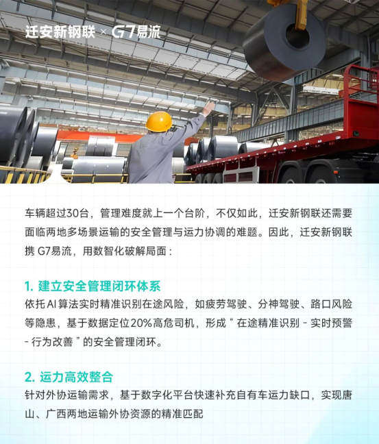 2024年起,遷安新鋼聯(lián)攜手G7易流,基于 “安全管理 + 運力整合” 的核心需求,開啟深度合作: