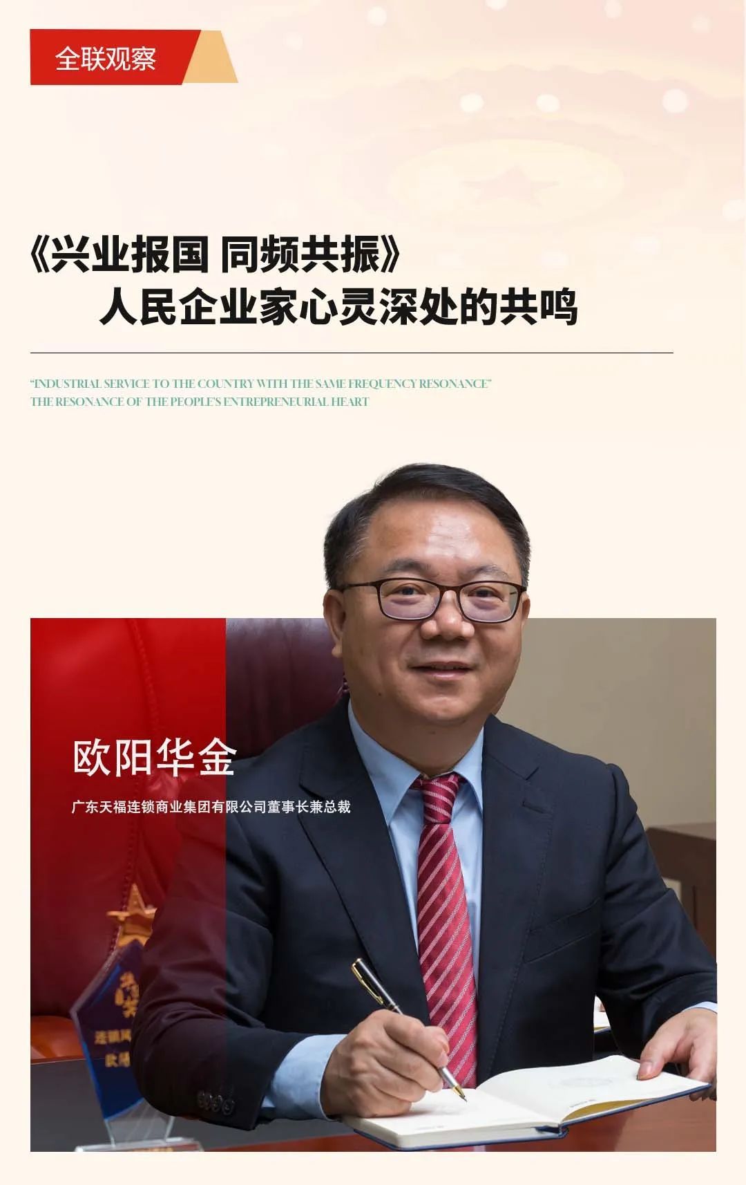 有這樣一群人,他們站在經(jīng)濟(jì)發(fā)展的最前線,以智慧為舵,以勇氣為帆,引領(lǐng)著中國(guó)企業(yè)在全球舞臺(tái)上乘風(fēng)破浪。他們,是人民企業(yè)家,一個(gè)承載著國(guó)家希望、民族夢(mèng)想的時(shí)代群體。在“興業(yè)報(bào)國(guó),同頻共振”的宏大敘事下,他們的心靈深處,激蕩著共鳴與擔(dān)當(dāng),共同繪制出一幅幅波瀾壯闊的發(fā)展畫(huà)卷。
