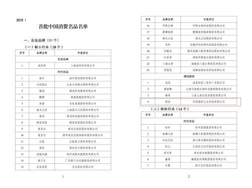 這不是德佑第一次作為公眾關(guān)注的焦點(diǎn)出現(xiàn)在大眾視野之中。在此前國家工業(yè)和信息化部發(fā)布的首批中國消費(fèi)名品名單上,德佑品牌赫然在列。
