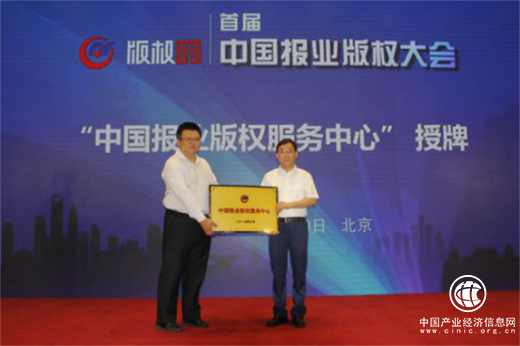 人民日報社副社長、中國報業(yè)協(xié)會理事長張建星給“中國報業(yè)版權服務中心”授牌