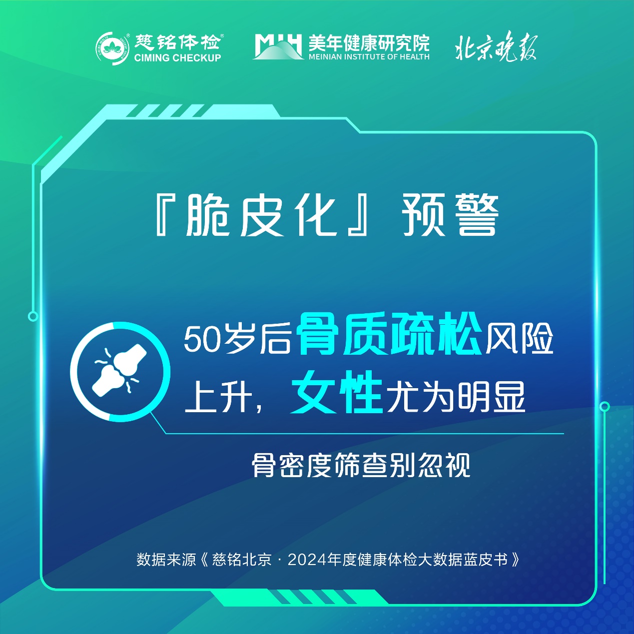 《藍(lán)皮書》研究數(shù)據(jù)來源于慈銘體檢2024年度北京市19家體檢中心的健康體檢數(shù)據(jù),納入分析的人群樣本量為113.46萬,聚焦“健康中國”主要領(lǐng)域,選取心血管健康、內(nèi)分泌健康、呼吸健康、消化健康、泌尿生殖健康和骨骼健康六大領(lǐng)域的體檢常見疾病或異常開展深入分析,為客戶健康管理和疾病預(yù)防提供數(shù)據(jù)支持。