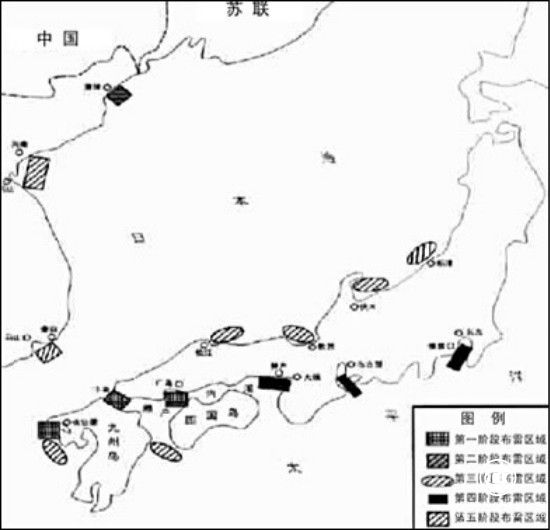 第二項(xiàng)行動(dòng)是代號(hào)“饑餓戰(zhàn)役”的布雷封鎖。日本是個(gè)島國(guó),資源匱乏,橡膠、棉花和羊毛需求的100%,石油需求的92%,鐵砂的87%,煤炭的24%(其中焦炭占90%),糧食的20%都依賴從國(guó)外進(jìn)口。因此美軍采用攻勢(shì)布雷封鎖日本港口,切斷日本的海上運(yùn)輸。