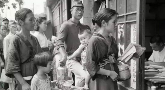 東京街頭排隊(duì)領(lǐng)取配給食品的日本百姓