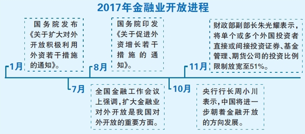 在外資持股比例放開后,市場認為,我國金融業(yè)在牌照準入以及中資機構(gòu)“走出去”等方面也將推出進一步的舉措。金融業(yè)的開放也仍然需要更多的配套政策支持。