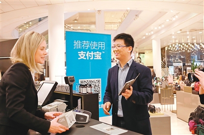 圖為芬蘭最大百貨商場(chǎng)斯托克曼引入支付寶支付作為商場(chǎng)購(gòu)物支付方式。新華社記者 李驥志 攝