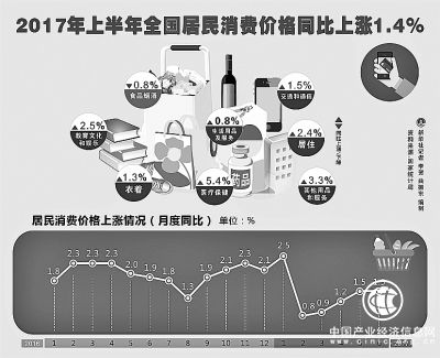——物價形勢總體穩(wěn)定。上半年全國居民消費(fèi)價格同比上漲了1.4%,與一季度基本持平;扣除食品和能源價格的核心CPI基本穩(wěn)定,上半年核心CPI同比上漲2.1%。