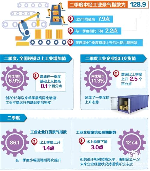 二季度,工業(yè)企業(yè)訂貨景氣指數(shù)為86.1,比上季度上升1.4點(diǎn),在一季度小幅回調(diào)后再次提升;工業(yè)企業(yè)家信心預(yù)期指數(shù)為127.4,比上季度下降3.0點(diǎn),但仍處于相對(duì)較高水平,表明企業(yè)家對(duì)未來企業(yè)經(jīng)營(yíng)狀況持謹(jǐn)慎樂觀態(tài)度。綜合來看,在相關(guān)政策的支持下,三季度工業(yè)有望繼續(xù)保持平穩(wěn)態(tài)勢(shì)。(本文執(zhí)筆:吳濱王宏偉)