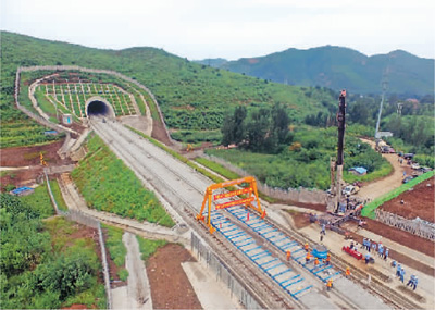 京沈高鐵遼寧段軌道板鋪設(shè)完成。楊青攝(新華社發(fā))