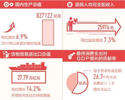 按可比價格計算,2017年我國GDP同比增長6.9%,實現(xiàn)自2011年以來的首次增長加速,改變了多年來經濟增速單向放緩的狀況。在增長保持平穩(wěn)的同時,我國城鎮(zhèn)新增就業(yè)人數(shù)超過1300萬,CPI上漲1.6%,外匯儲備年末近31400億美元……中國經濟運行在合理區(qū)間,穩(wěn)的格局更加鞏固。