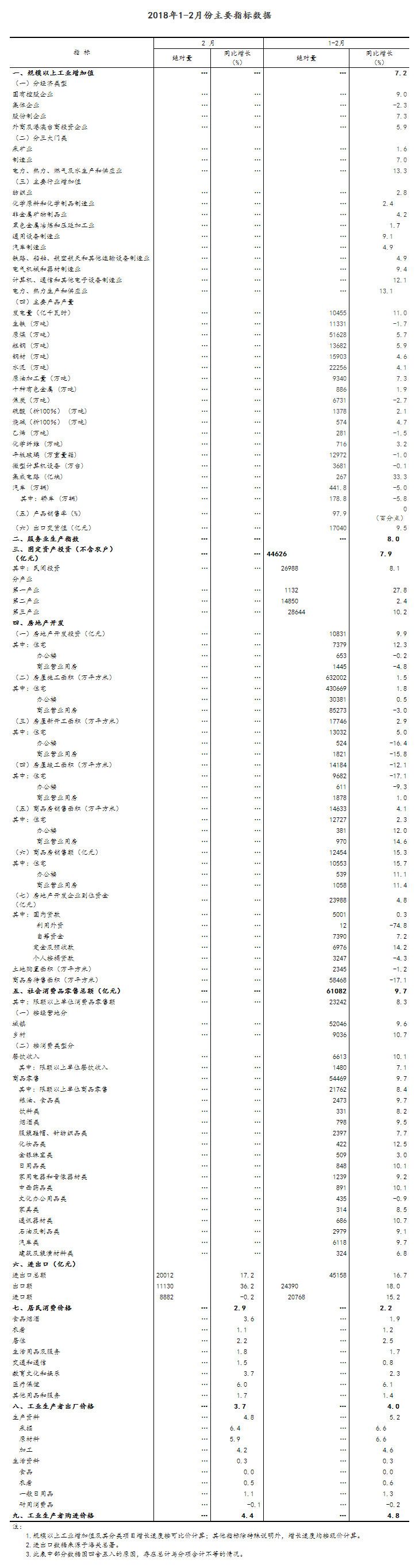 1-2月份,在以習(xí)近平同志為核心的黨中央堅(jiān)強(qiáng)領(lǐng)導(dǎo)下,各地區(qū)各部門以習(xí)近平新時(shí)代中國特色社會主義思想為指導(dǎo),認(rèn)真貫徹黨的十九大和中央經(jīng)濟(jì)工作會議精神,堅(jiān)持穩(wěn)中求進(jìn)工作總基調(diào),堅(jiān)持新發(fā)展理念,以供給側(cè)結(jié)構(gòu)性改革為主線,大力推動高質(zhì)量發(fā)展,經(jīng)濟(jì)運(yùn)行延續(xù)穩(wěn)中向好態(tài)勢,新興動能茁壯成長,經(jīng)濟(jì)結(jié)構(gòu)升級優(yōu)化,質(zhì)量效益持續(xù)改善,經(jīng)濟(jì)運(yùn)行起步向好。