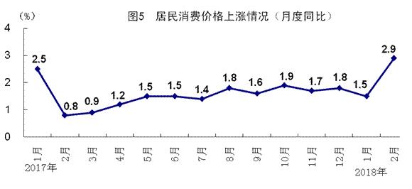 1-2月份,全國居民消費(fèi)價(jià)格同比上漲2.2%,漲幅比上年12月份擴(kuò)大0.4個(gè)百分點(diǎn),比上年同期擴(kuò)大0.5個(gè)百分點(diǎn)。分類別看,食品煙酒價(jià)格同比上漲1.9%,衣著上漲1.2%,居住上漲2.5%,生活用品及服務(wù)上漲1.7%,交通和通信上漲0.8%,教育文化和娛樂上漲2.3%,醫(yī)療保健上漲6.1%,其他用品和服務(wù)上漲1.4%。在食品煙酒價(jià)格中,糧食價(jià)格同比上漲1.2%,豬肉價(jià)格下降9.0%,鮮菜價(jià)格上漲5.6%。分月看,1月、2月全國居民消費(fèi)價(jià)格同比分別上漲1.5%和2.9%,環(huán)比分別上漲0.6%和1.2%。