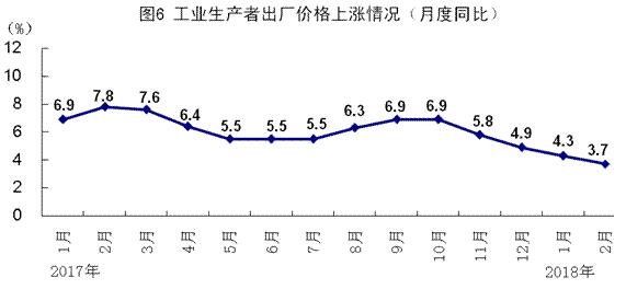 1-2月份,全國工業(yè)生產(chǎn)者出廠價(jià)格同比上漲4.0%,漲幅比上年12月份下降0.9個(gè)百分點(diǎn),比上年同期下降3.3個(gè)百分點(diǎn)。分月看,1月份全國工業(yè)生產(chǎn)者出廠價(jià)格同比上漲4.3%,環(huán)比上漲0.3%;2月份全國工業(yè)生產(chǎn)者出廠價(jià)格同比上漲3.7%,環(huán)比下降0.1%。1-2月份,全國工業(yè)生產(chǎn)者購進(jìn)價(jià)格同比上漲4.8%,比上年12月份和上年同期分別下降1.1和4.3個(gè)百分點(diǎn)。