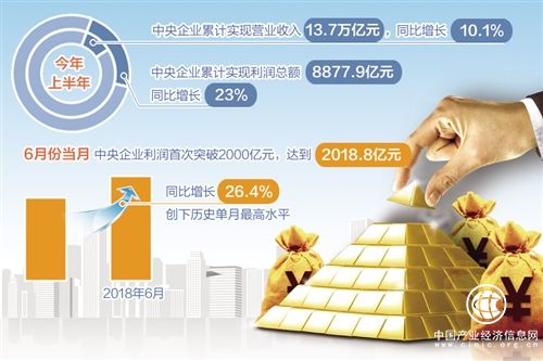 “今年6月份,中央企業(yè)利潤首次突破2000億元,達到2018.8億元,同比增長26.4%,創(chuàng)歷史單月最高水平。單月利潤和半年利潤均創(chuàng)歷史紀錄。”彭華崗說。