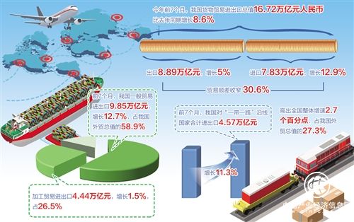 受去產(chǎn)能、環(huán)保等政策影響,原油、天然氣等商品進(jìn)口量增加,鐵礦砂進(jìn)口量減少,大宗商品進(jìn)口均價(jià)漲跌互現(xiàn)。前7個(gè)月,我國(guó)進(jìn)口鐵礦砂6.21億噸,減少0.7%;原油2.61億噸,增加5.6%;煤1.75億噸,增加15%;天然氣4943萬(wàn)噸,增加34.3%;鋼材770萬(wàn)噸,減少1.1%。“需要注意的是,雖然目前對(duì)美出口仍有不少增長(zhǎng),但隨著中美經(jīng)貿(mào)摩擦升級(jí),貿(mào)易保護(hù)主義對(duì)出口的影響在今年4季度到明年會(huì)進(jìn)一步顯現(xiàn),外需面臨日趨緊縮的局面。”楊長(zhǎng)湧分析表示,從進(jìn)出口走勢(shì)看,未來(lái)我國(guó)貿(mào)易順差將繼續(xù)收窄,乃至可能出現(xiàn)逆差,要防止資本賬戶(hù)也出現(xiàn)逆差,沖擊外匯儲(chǔ)備的穩(wěn)定。