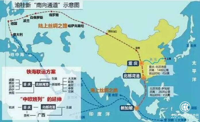 打開世界地圖,南向通道與橫貫亞歐大陸的中歐班列形成一條完整的“弧線”,首次實(shí)現(xiàn)絲綢之路經(jīng)濟(jì)帶和21世紀(jì)海上絲綢之路的無縫銜接。