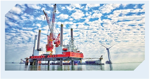 圖為建設(shè)中的福建福清興化灣30萬千瓦海上風(fēng)電場一期工程。 王軼辰 攝
