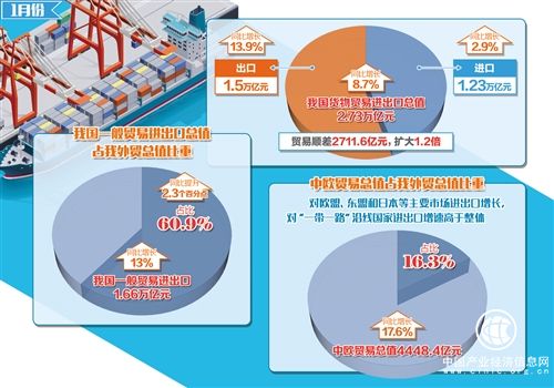 1月份,我國(guó)一般貿(mào)易進(jìn)出口1.66萬(wàn)億元,增長(zhǎng)13%——