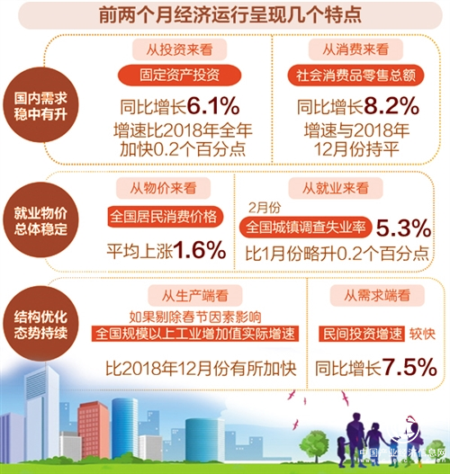 前兩個(gè)月國(guó)民經(jīng)濟(jì)運(yùn)行數(shù)據(jù)出爐——部分指標(biāo)趨勢(shì)向好 穩(wěn)中有進(jìn)態(tài)勢(shì)延續(xù)