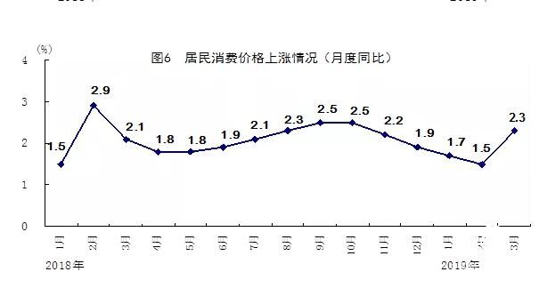 一季度,全國居民消費價格同比上漲1.8%,漲幅比1-2月份擴大0.2個百分點,比上年同期回落0.3個百分點。其中,城市上漲1.9%,農村上漲1.8%。分類別看,食品煙酒價格同比上漲2.2%,衣著上漲1.8%,居住上漲2.1%,生活用品及服務上漲1.3%,交通和通信下降0.8%,教育文化和娛樂上漲2.6%,醫(yī)療保健上漲2.7%,其他用品和服務上漲2.1%。在食品煙酒價格中,糧食價格上漲0.5%,豬肉價格下降1.2%,鮮菜價格上漲6.9%。3月份,全國居民消費價格同比上漲2.3%,漲幅比上月擴大0.8個百分點;環(huán)比下降0.4%。