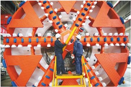 今年以來,濟南重工集團有限公司打造以軌道交通裝備產(chǎn)業(yè)為核心的智能制造與高端裝備產(chǎn)業(yè)園,重點發(fā)展全斷面隧道掘進機、隧道掘進專用裝備、裝配式建材生產(chǎn)線等產(chǎn)品領(lǐng)域,老國企煥發(fā)出勃勃生機。圖為工人在查看即將完工的盾構(gòu)機刀盤。張進剛攝(人民視覺)