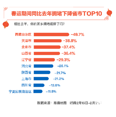 值得注意的是,春節(jié)前高德地圖攜手中國氣象局公共氣象服務(wù)中心、全國80多家交通管理部門聯(lián)合發(fā)布了《2018春運安全出行指南》(以下簡稱“指南”),預(yù)測分析了城市交通擁堵趨勢以及出行趨勢,通過對比今日發(fā)布的報告來看,與此前指南的預(yù)測趨勢基本一致,說明大數(shù)據(jù)對于指導(dǎo)群眾出行具有一定參考意義。