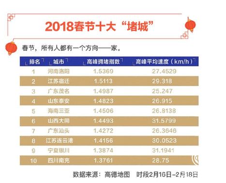 報告還公布了正月初一至初三我國主要城市擁堵排名,TOP10為洛陽、宿遷、茂名、泰安、三亞、大同、汕頭、連云港、銀川、南充。而傳統(tǒng)堵城北京、上海、深圳、杭州均排到了70名以外。