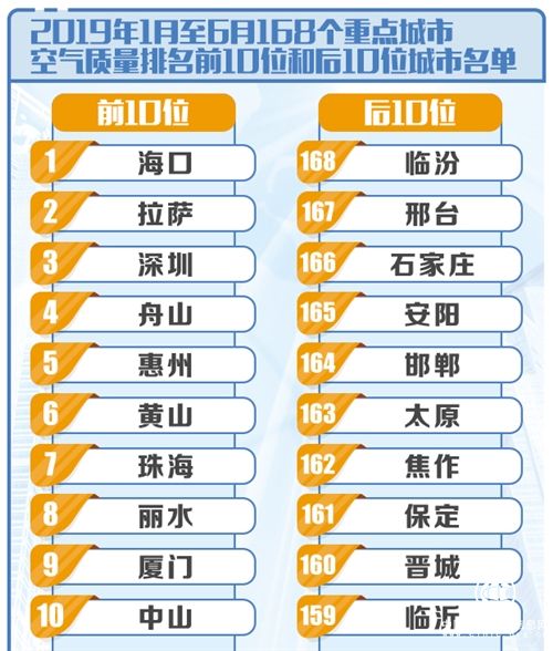 從重點城市空氣質(zhì)量排名看,上半年168個重點城市中,臨汾、邢臺、石家莊市等20個城市空氣質(zhì)量相對較差;??凇⒗_、深圳市等20個城市空氣質(zhì)量相對較好。