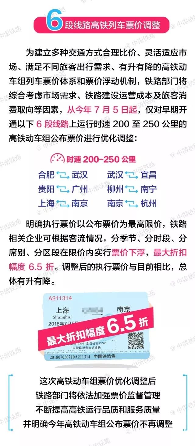 中國鐵路總公司相關(guān)負(fù)責(zé)人表示,此次調(diào)圖還將分季節(jié)、分時段、分席別、分區(qū)段在限價內(nèi)實行票價下浮,最大折扣幅度6.5折。調(diào)整后的執(zhí)行票價與目前相比,總體有升有降。