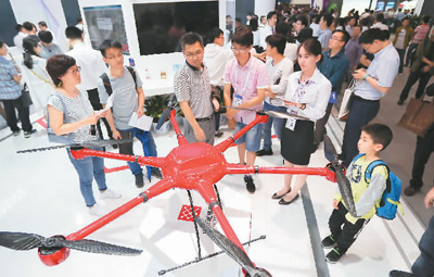市民在中國國際大數(shù)據(jù)產(chǎn)業(yè)博覽會現(xiàn)場參觀大型無人機(jī)。新華社記者 劉續(xù) 攝