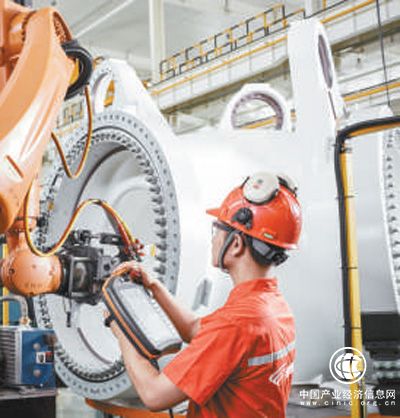 工人在新疆金風(fēng)科技股份有限公司哈密總裝智能生產(chǎn)線上進(jìn)行數(shù)控操作。新華社發(fā)